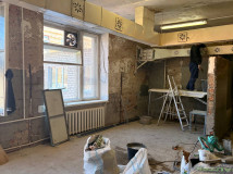 На пищеблоке уже подготовлены стены для укладки новой плитки.