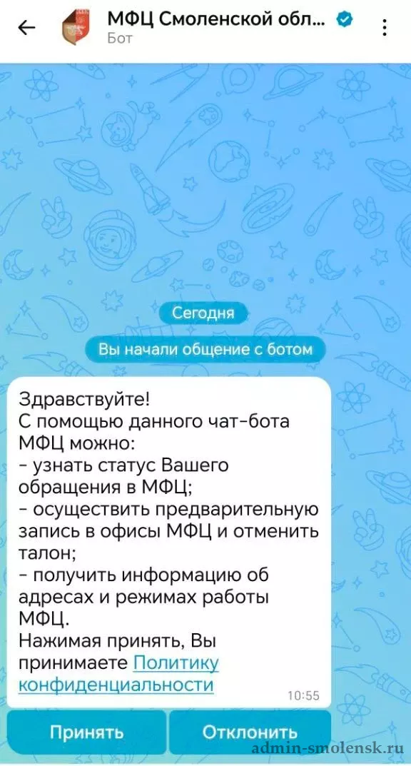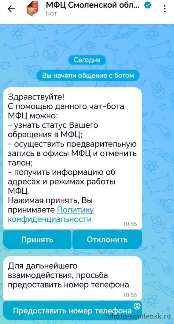 Чат-бот МФЦ Смоленской области поможет: