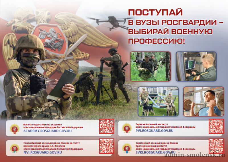 Управление Росгвардии по Смоленской области сообщает о возможности поступления в вузы.