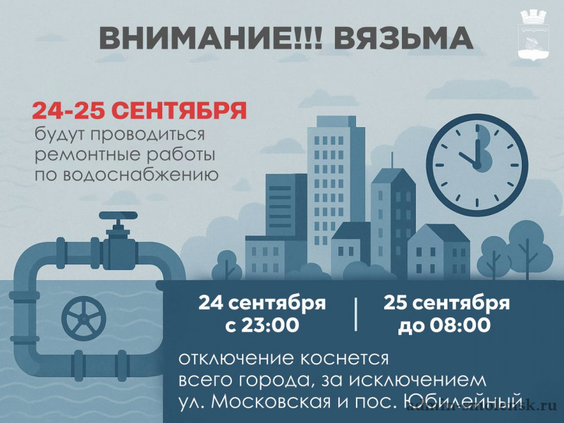 В целях подготовки к зимнему периоду и стабильной работы системы водоснабжения, с 23:00 24 сентября до 08:00 25 сентября будут проводиться ремонтные работы.