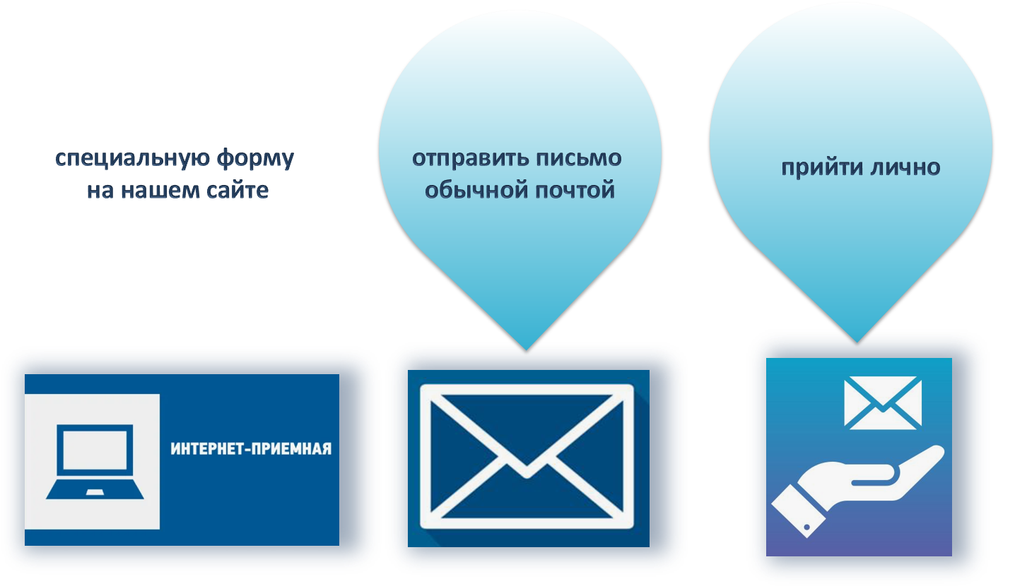 Предлагаем Вам направить обращение через специальную форму на нашем сайте, отправить письмо обычной почтой или прийти лично.